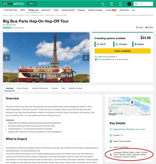 The goal of this project was to improve the way TripAdvisor shows multiple languages that are available within a specific tour. For instance, if a traveler speaks only French, and are searching guided tours in London, they would need to make sure when they select their tour, that it’s available in French.